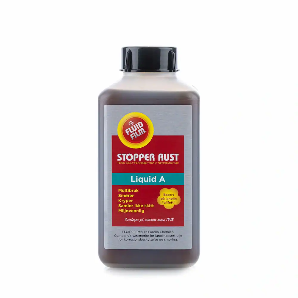 Lanolinbasert olje som hverken størkner eller fordamper og egner seg svært godt som rustløser og smøremiddel. Tynn som motorolje. Liquid A er svært penetrerende og saltvannsbestandig. Fluid Film Liquid A fortrenger vann og samler ikke skitt slik vanlig olje gjør. Åpne kjeder kan derfor forlenge levetiden med 300 prosent. Siden den ikke fordamper eller størkner, er den aktiv og penetrerende over lang tid.